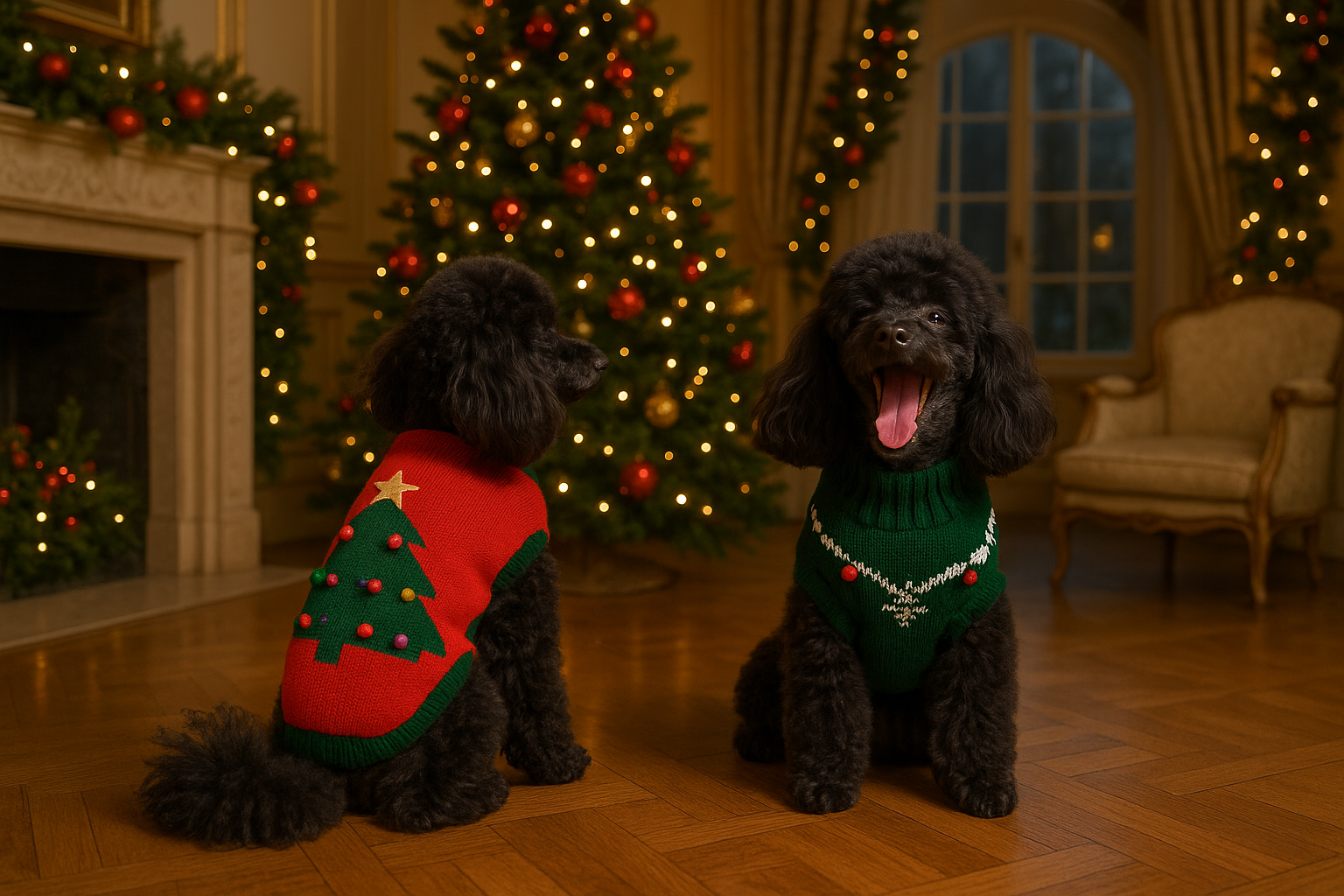 Maglioncino Dolcevita Natalizio con Albero di Natale e PomPon - Rosso