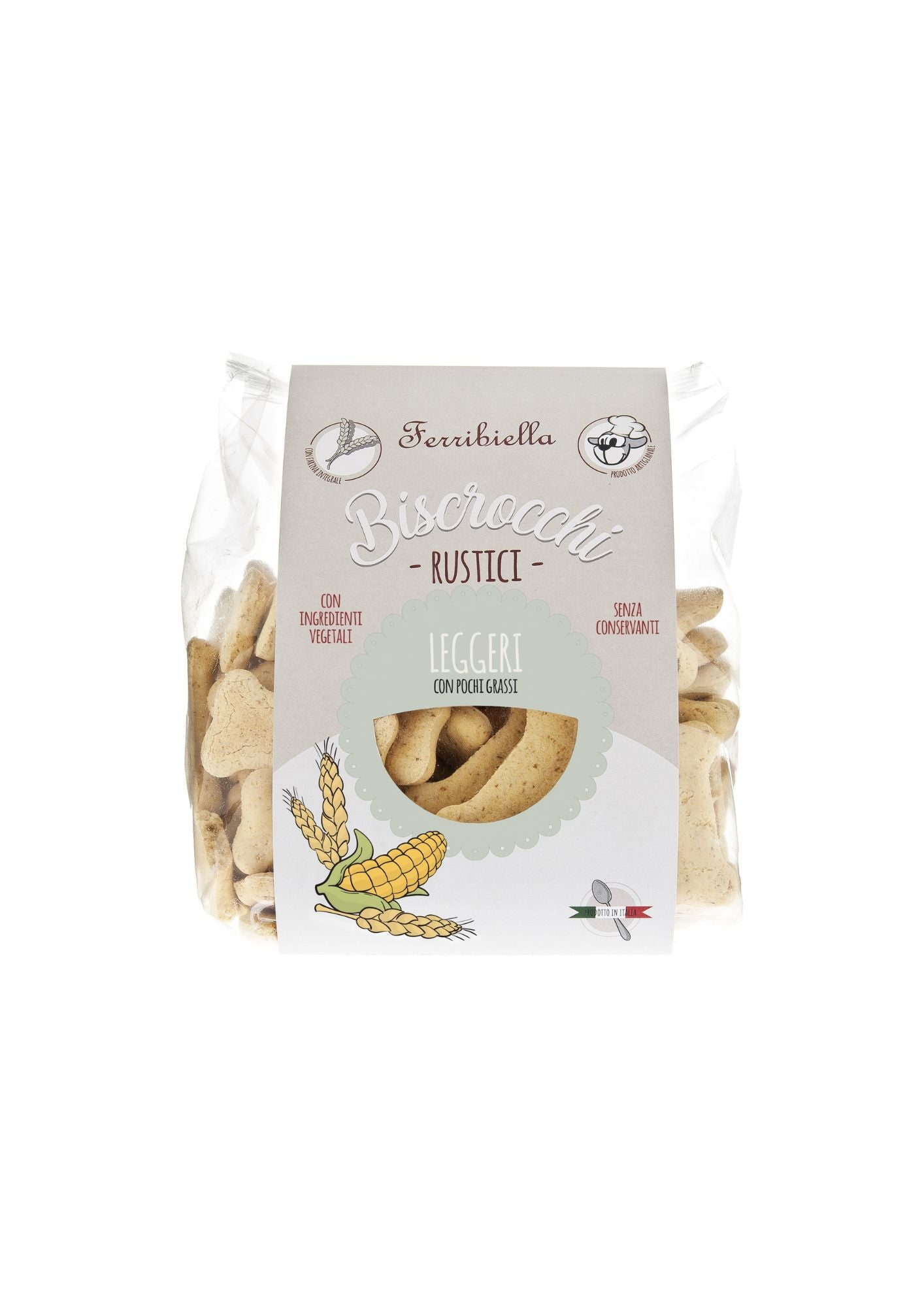 Busta da 400 g di biscotti rustici leggeri, dalla consistenza friabile e dal profumo naturale