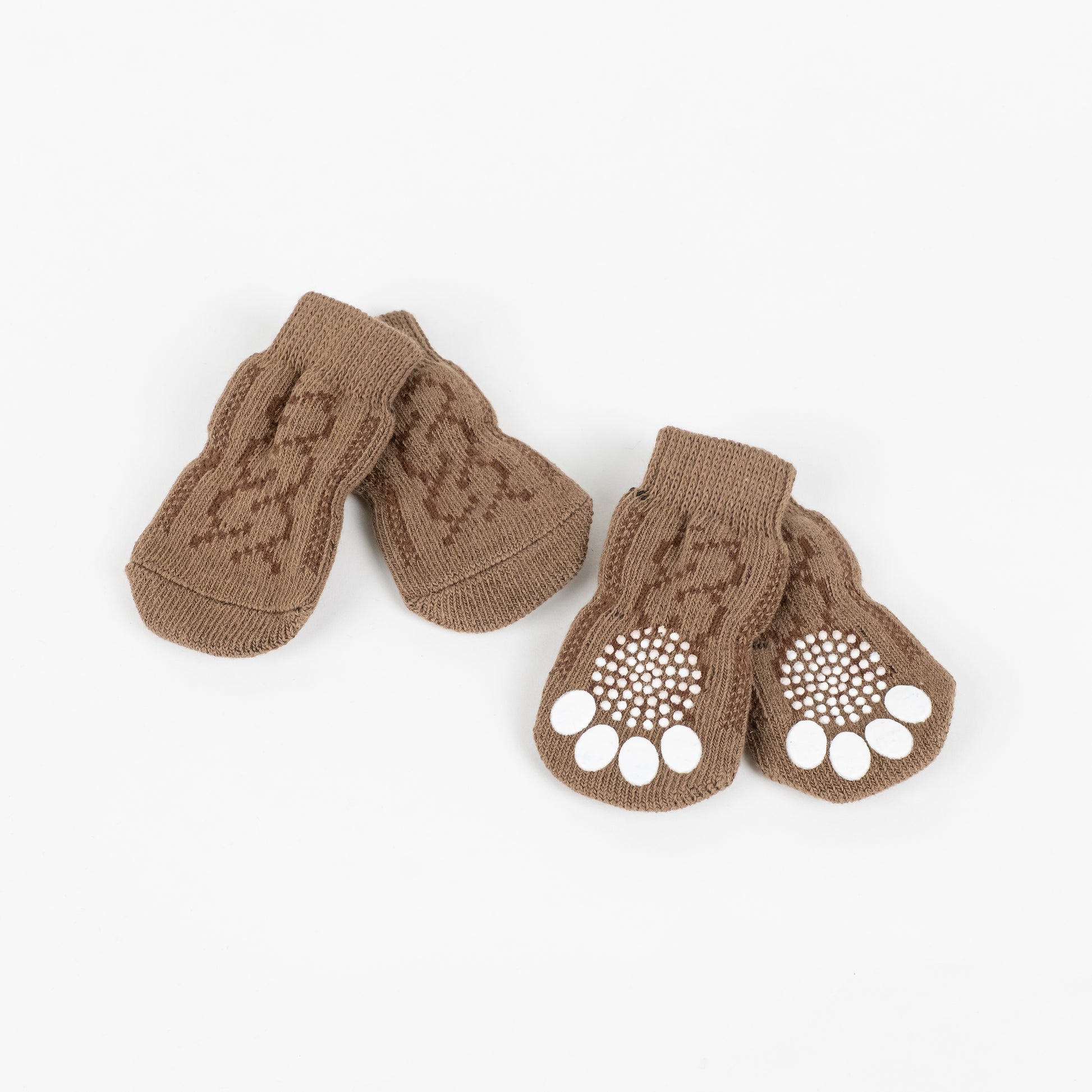 Calzini Antiscivolo per Cani e Gatti - Fantasia Treccia Marrone