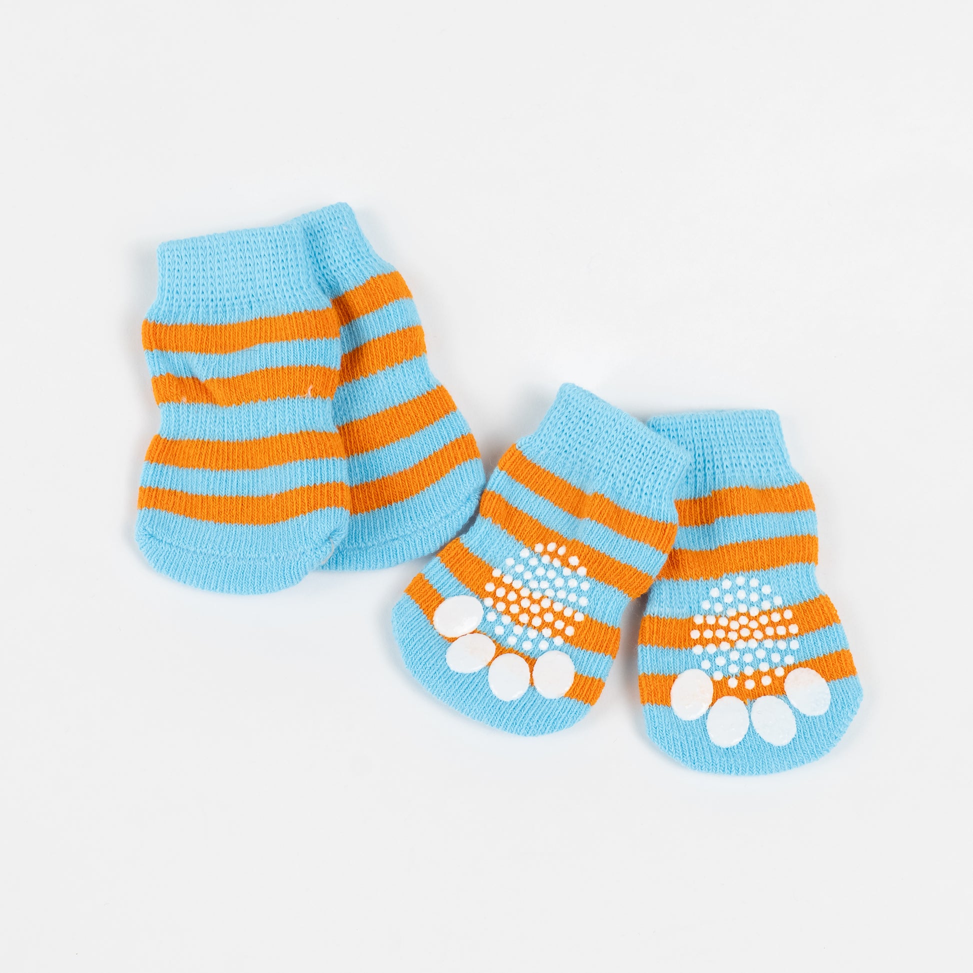 Calzini Antiscivolo per Cani e Gatti - Righe Azzurro e Arancione
