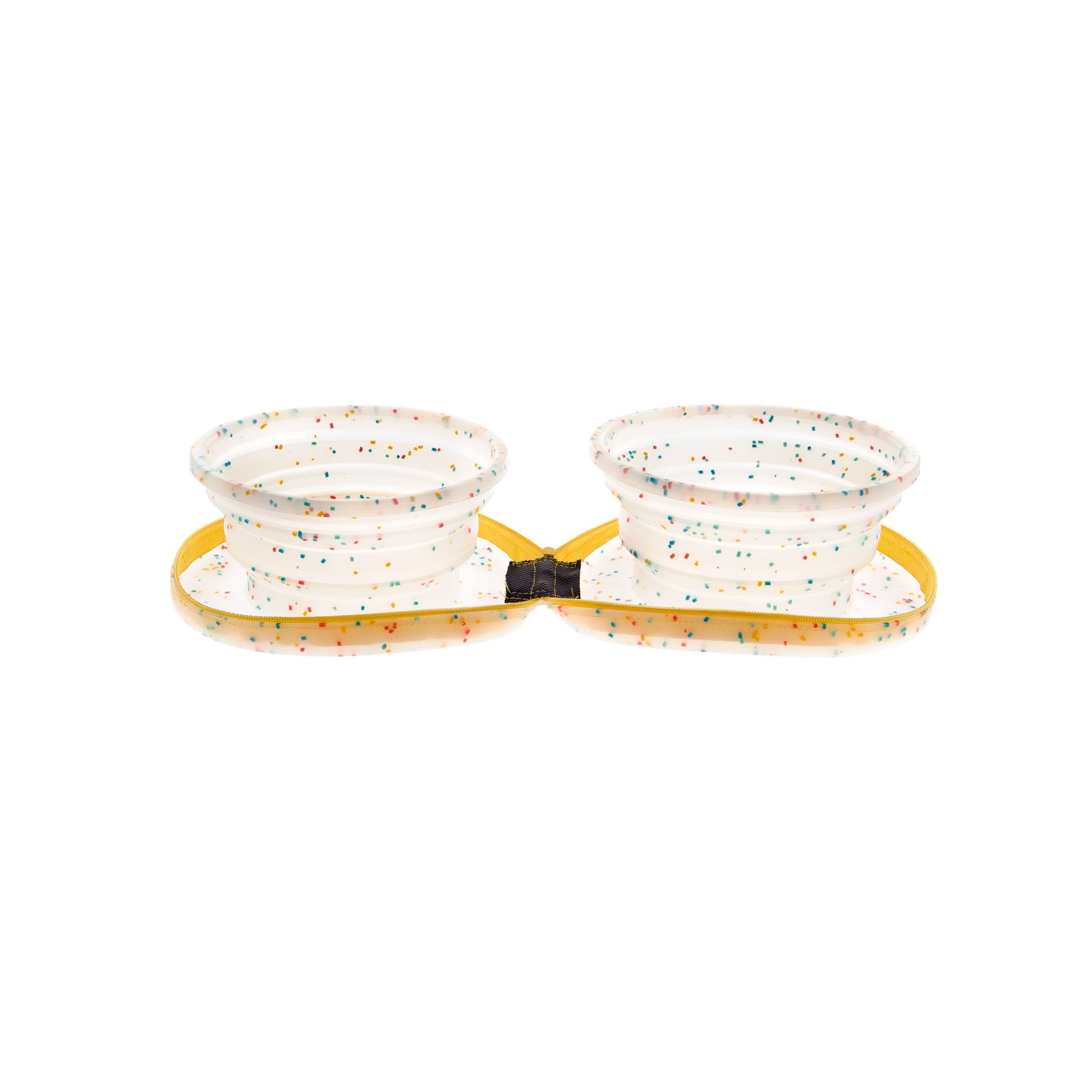 La Ciotola Doppia da Viaggio “Compact” è l’accessorio perfetto per chi ama viaggiare con il proprio cane o gatto. Pratica, leggera e completamente pieghevole, si apre per rivelare due ciotole in silicone ideali per acqua e cibo. Una volta chiusa, si compatta grazie alla zip in tessuto, occupando pochissimo spazio. Il design moderno e colorato la rende funzionale e piacevole da portare sempre con sé, durante passeggiate, viaggi o gite all’aperto.