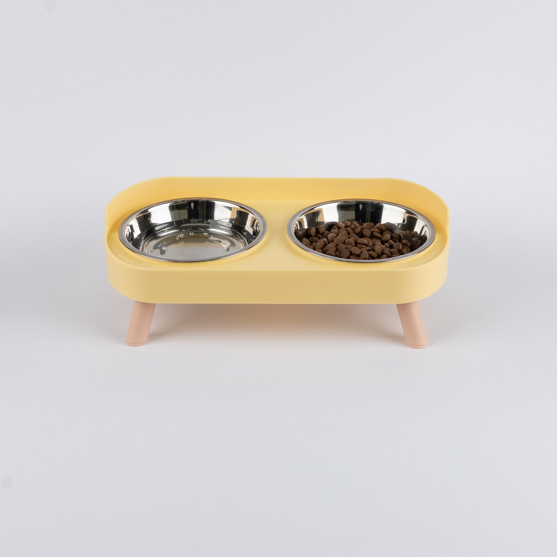 Ciotola Doppia Rialzata in Acciaio Inox - Giallo