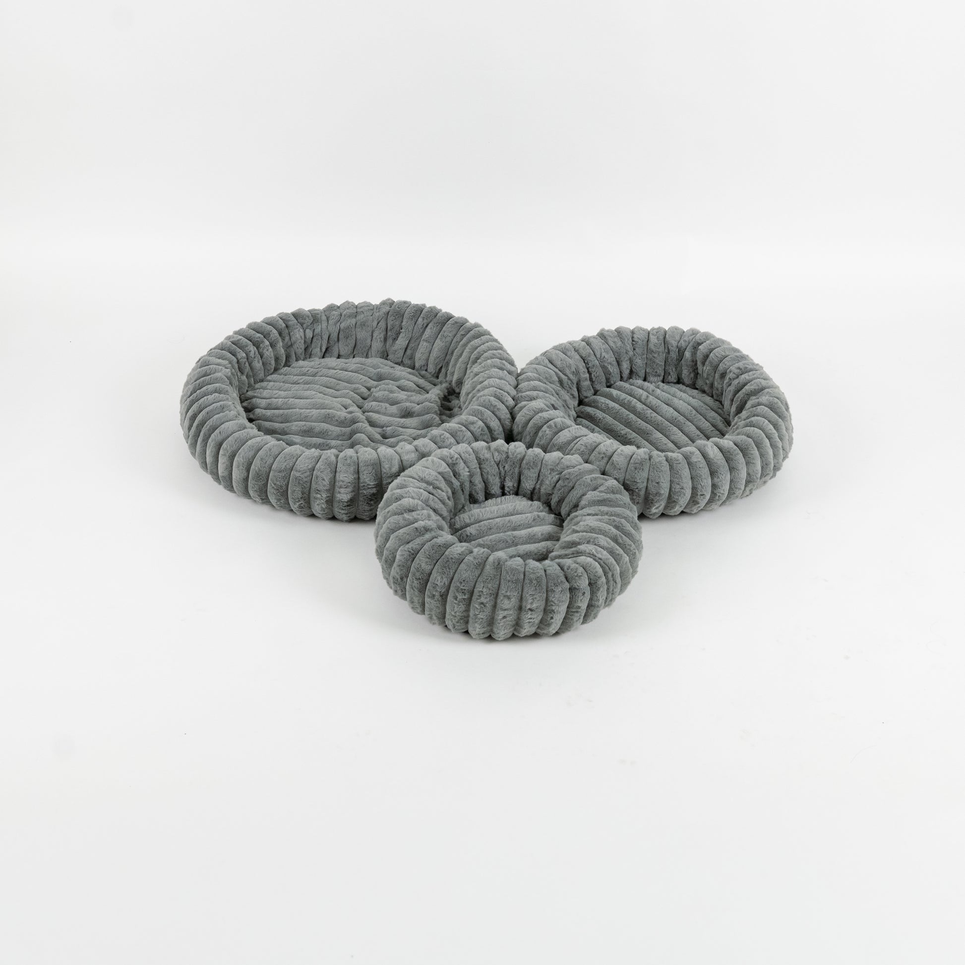 I bordi imbottiti sostengono la testa e il corpo, creando una forma accogliente che aiuta l’animale a sentirsi al sicuro e coccolato. Il fondo antiscivolo assicura stabilità anche su superfici lisce, mentre il design elegante e moderno si adatta perfettamente a qualsiasi ambiente della casa.