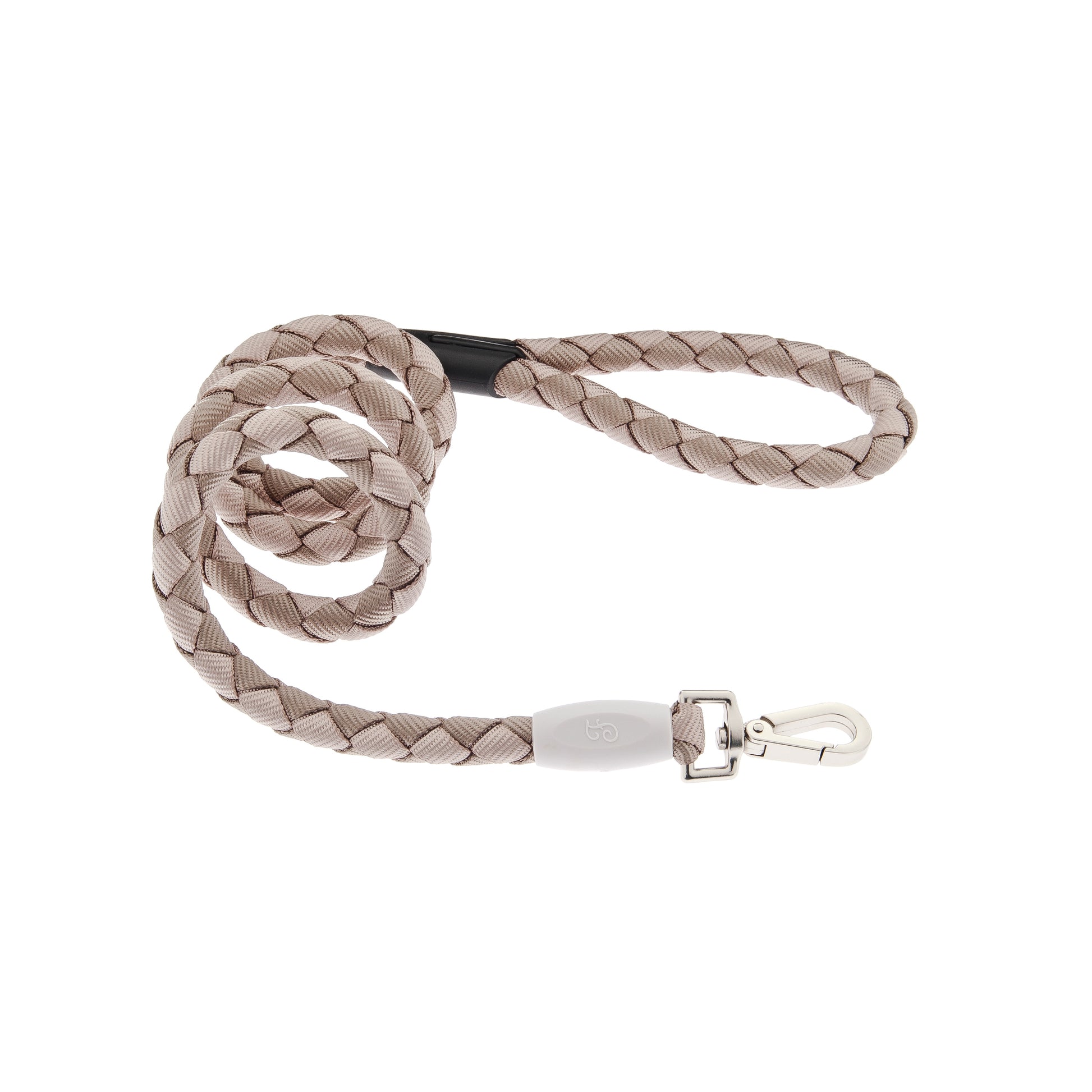 La texture intrecciata bicolore non solo dona un aspetto sportivo e accattivante, ma assicura anche una presa antiscivolo. Il moschettone in metallo resistente permette un aggancio sicuro al collare o alla pettorina, offrendo il massimo controllo e affidabilità.