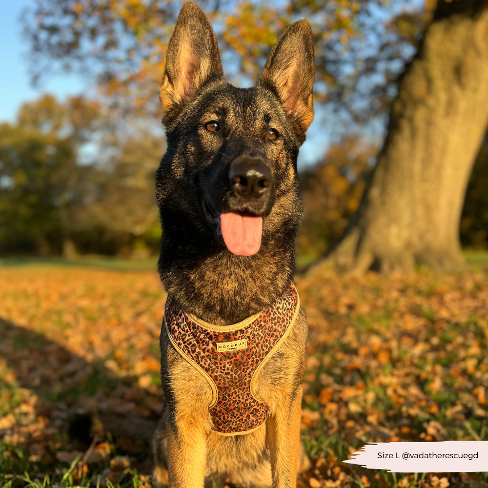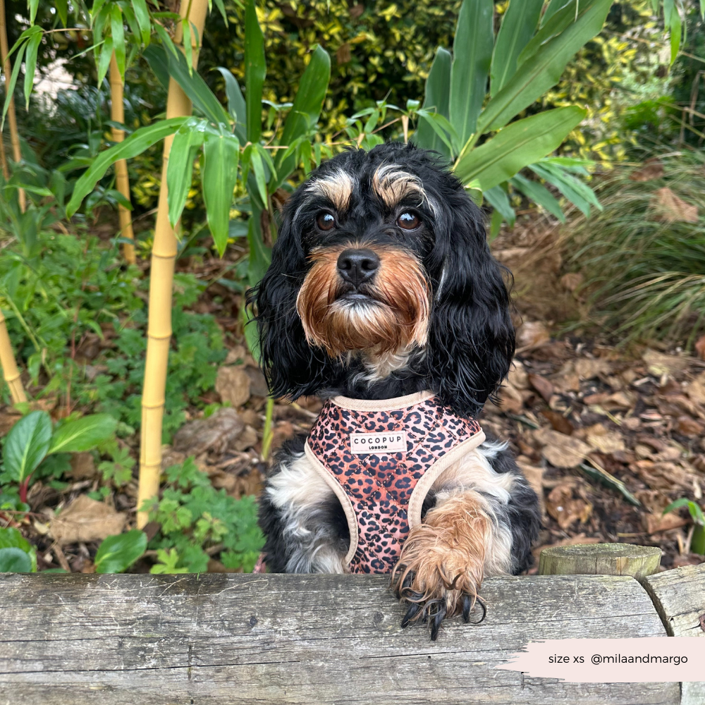 Vivi il lato selvaggio con il nostro Pettorina Regolabile per Cuccioli con Collo Trapuntato Leopardato! Funzionale e alla moda, questa pettorina è dotata di un blocco di sicurezza per una maggiore tranquillità durante le passeggiate.