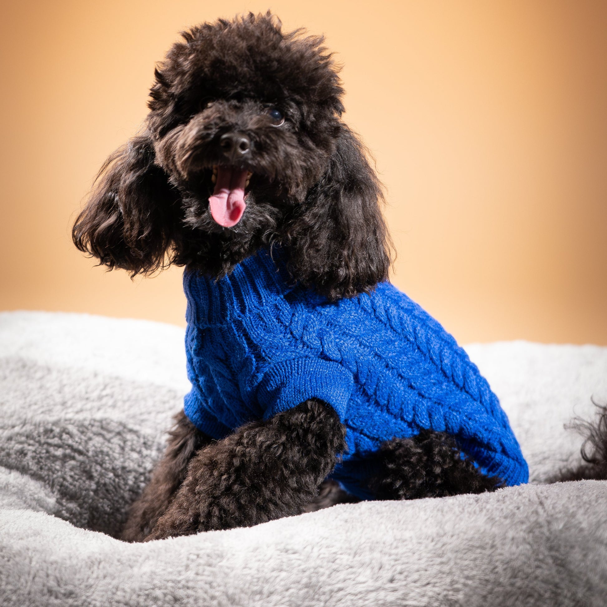 Avvolgi il tuo amico a quattro zampe in un abbraccio di calore e stile con il nostro maglioncino dolcevita con trama a treccia, un capo classico e raffinato pensato per cani e gatti che amano distinguersi con eleganza.