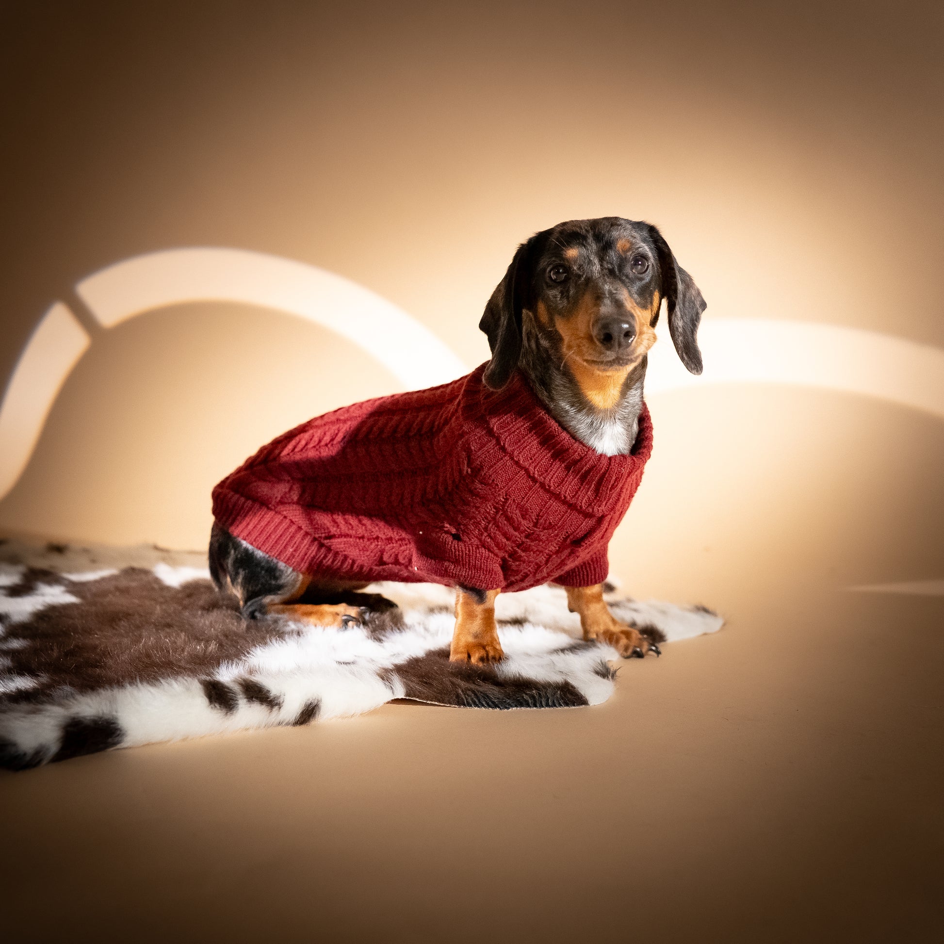 Avvolgi il tuo amico a quattro zampe in un abbraccio di calore e stile con il nostro maglioncino dolcevita con trama a treccia, un capo classico e raffinato pensato per cani e gatti che amano distinguersi con eleganza.
