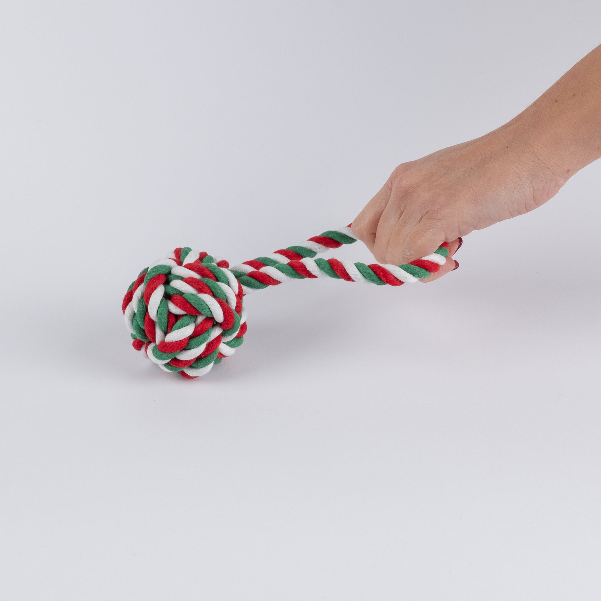 La pallina in corda con impugnatura è il gioco ideale per rendere ogni passeggiata o momento di svago ancora più divertente. Grazie alla sua maniglia resistente, puoi lanciarla con facilità o usarla per il classico gioco del tira e molla, stimolando l’attività fisica e mentale del tuo cane.