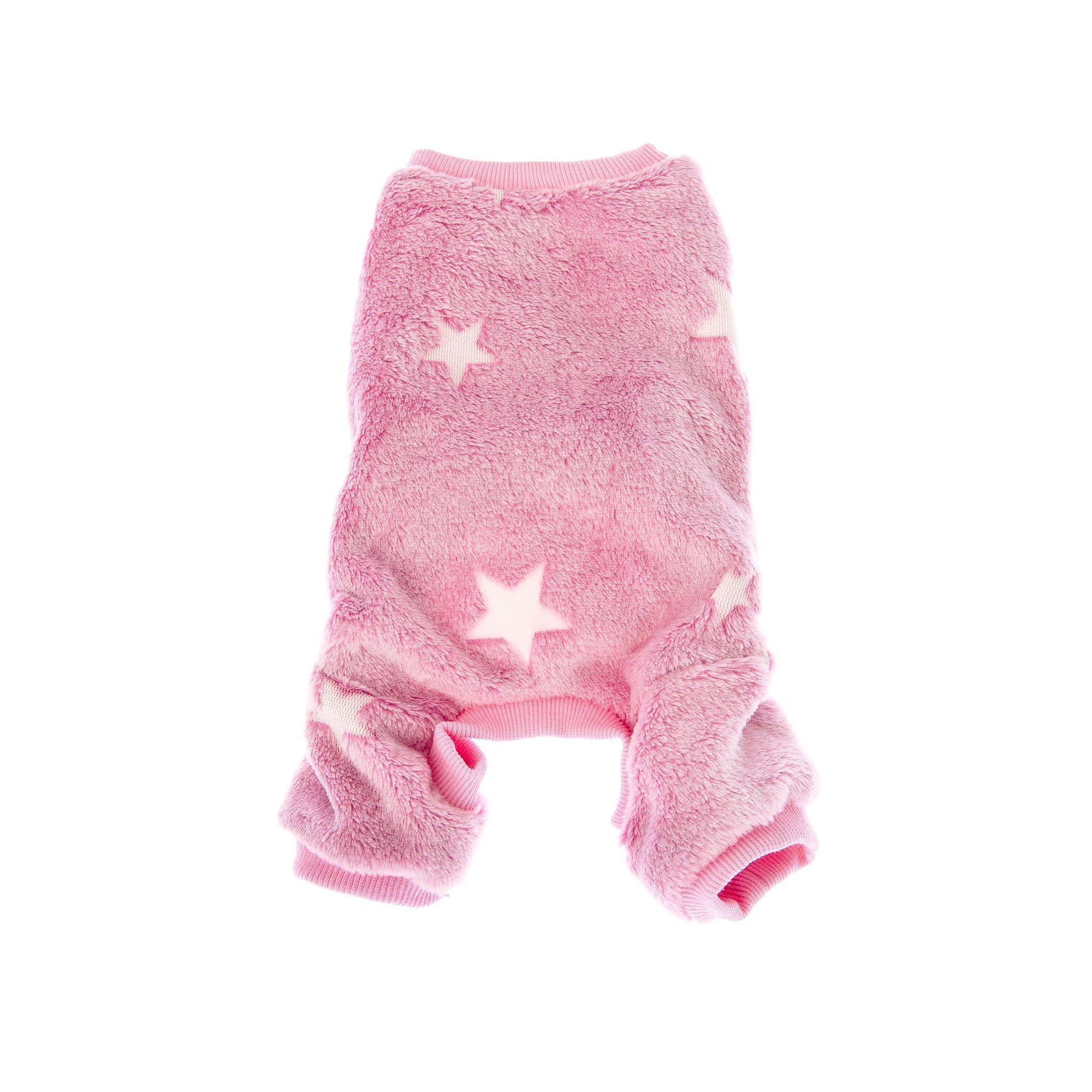Rendi le notti del tuo cane ancora più coccolose e divertenti con questo morbidissimo pigiama in pile! Decorato con stelline e lune fluorescenti che si illuminano al buio, è l’ideale per tenere il tuo amico a quattro zampe al caldo con un tocco di magia.