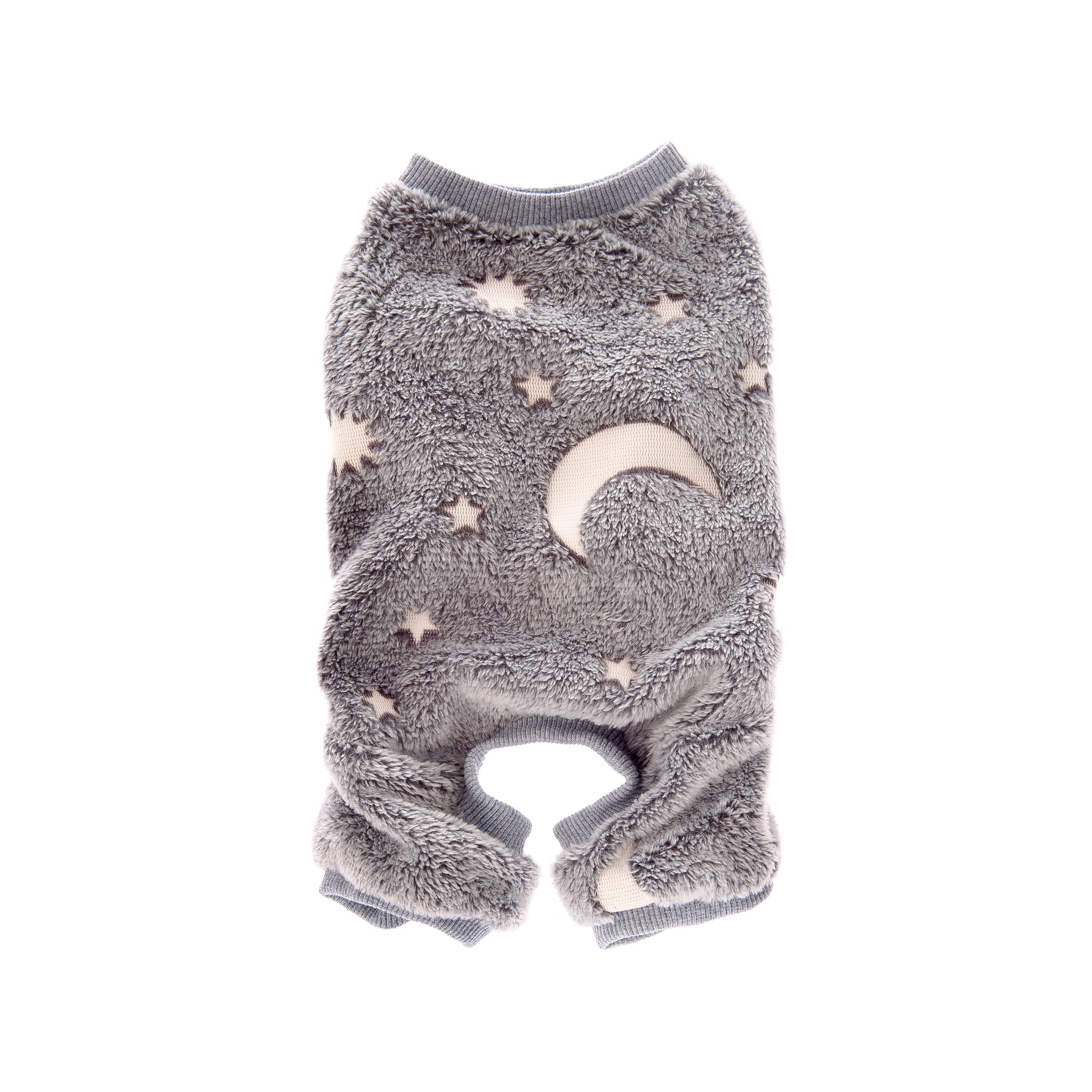 Rendi le notti del tuo cane ancora più coccolose e divertenti con questo morbidissimo pigiama in pile! Decorato con stelline e lune fluorescenti che si illuminano al buio, è l’ideale per tenere il tuo amico a quattro zampe al caldo con un tocco di magia.
